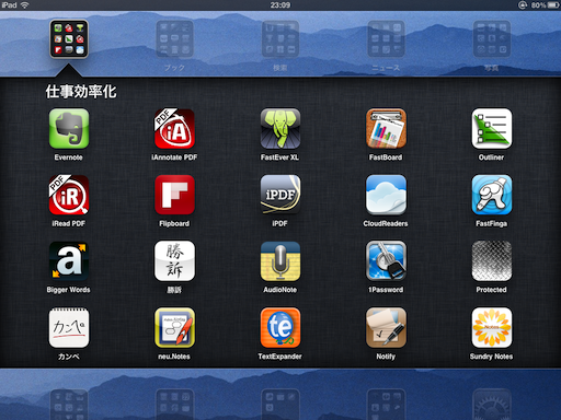 今回、iPadで一番嬉しいのがこのフォルダ機能。
